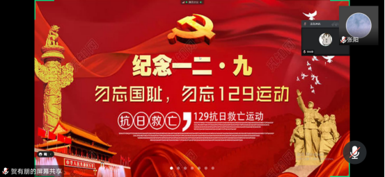 学生会于一二九纪念日当晚通过腾讯会议方式举行线上主题团日活动。本次活动由张晓菲同学主持,党委副书记彭蓉老师和团委书记汪钰成老师作联席主持。参加活动的还有成人app