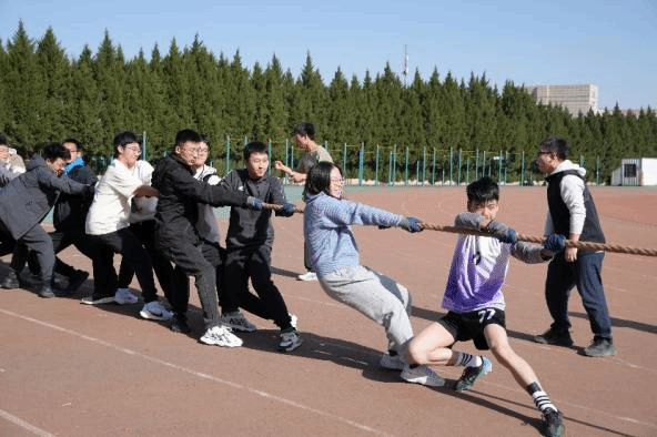 )拔河比赛在星天苑田径场举办,各年级踊跃报名、有序参加,共组成八支队伍进行角逐。