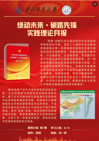 第四组围绕绿色发展与双碳目标,学习国家碳达峰碳中和战略,重点关注第三代半导体材料在新能源领域的应用前景以及芯片产业绿色制造实践。同学们体会到,绿色发展是高质量发展的底色,应积极探索科技赋能绿色转型的创新路径。