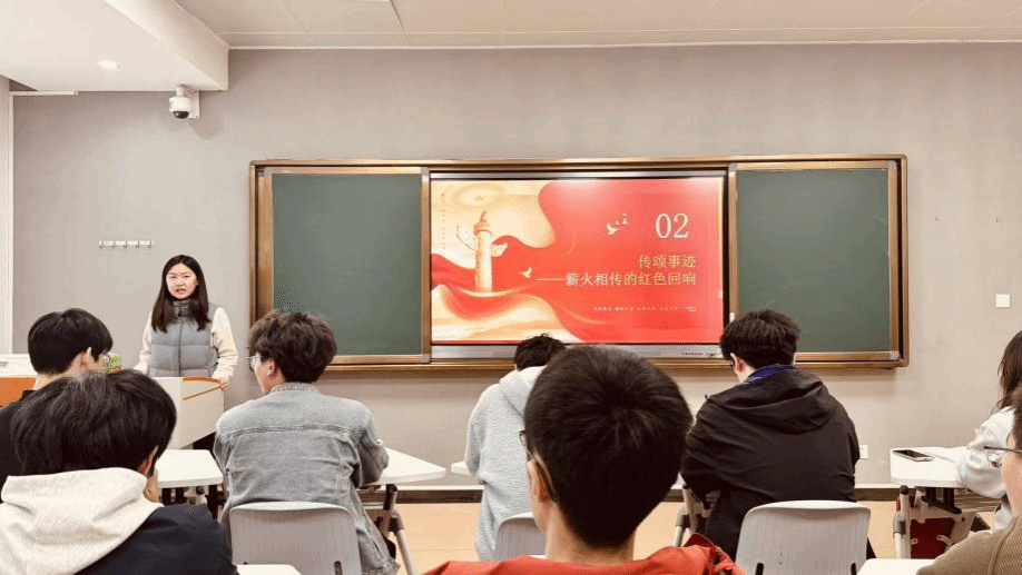 随后进入“传颂事迹——薪火相传的红色回响”环节,由陈昱廷、董审言、苏春昊、郑子祥和黄馨月5位同学依次分享家乡的红色事迹。